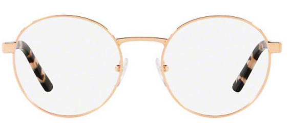 Круглые очки, из материала традиционные металлы и цвете золото помогут понять основные черты новой коллекции оправ модного бренда PRADA.