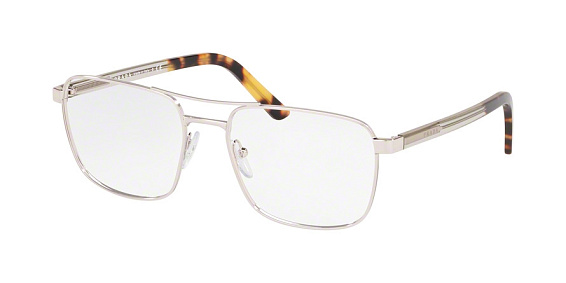 Прямоугольные очки, из материала традиционные металлы и цвете серебро помогут понять основные черты новой коллекции оправ модного бренда PRADA.