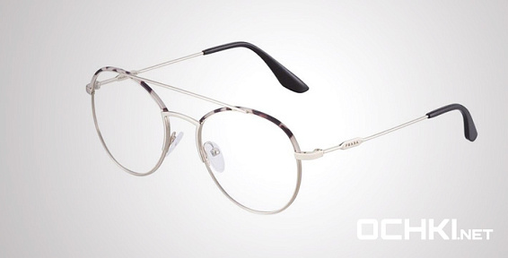 Круглые очки, из материала традиционные металлы и цвете серебро помогут понять основные черты новой коллекции оправ модного бренда PRADA.