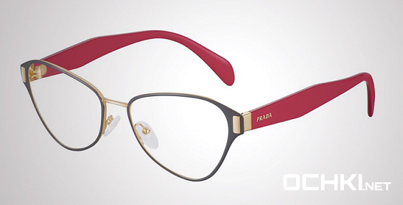 Кошачий глаз очки, из материала пластик и цвете золото помогут понять основные черты новой коллекции оправ модного бренда PRADA.