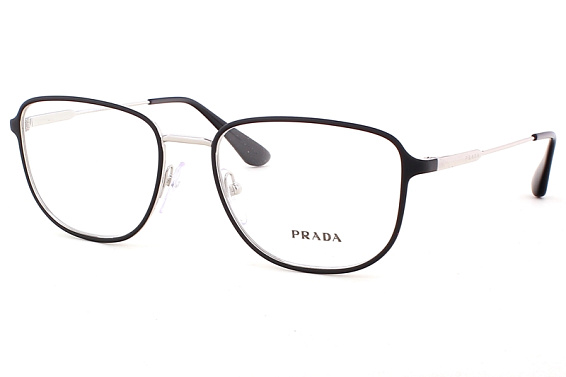 Прямоугольные очки, из материала традиционные металлы и цвете черный помогут понять основные черты новой коллекции оправ модного бренда PRADA.