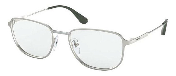 Прямоугольные очки, из материала традиционные металлы и цвете серебро помогут понять основные черты новой коллекции оправ модного бренда PRADA.