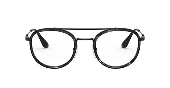 Круглые очки, из материала традиционные металлы и цвете черный помогут понять основные черты новой коллекции оправ модного бренда PRADA.