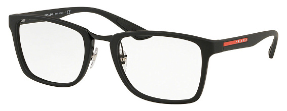 Прямоугольные очки, из материала пластик и цвете черный помогут понять основные черты новой коллекции оправ модного бренда PRADA.