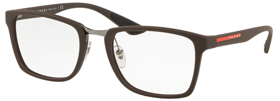 Прямоугольные очки, из материала пластик и цвете коричневый помогут понять основные черты новой коллекции оправ модного бренда PRADA.