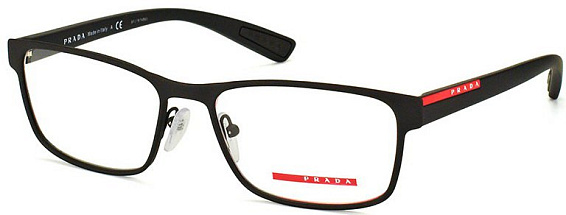 Прямоугольные очки, из материала пластик и цвете черный помогут понять основные черты новой коллекции оправ модного бренда PRADA.
