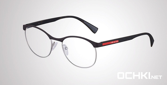 Овальные очки, из материала пластик и цвете черный помогут понять основные черты новой коллекции оправ модного бренда PRADA.