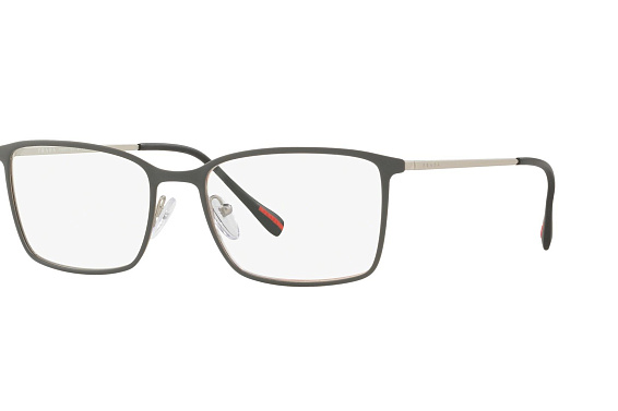 Прямоугольные очки, из материала пластик и цвете серый помогут понять основные черты новой коллекции оправ модного бренда PRADA.