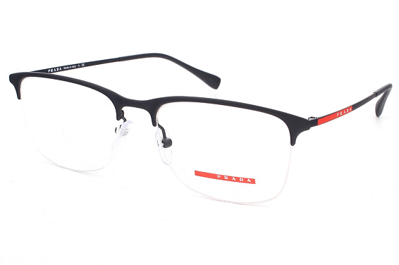 Прямоугольные очки, из материала пластик и цвете черный помогут понять основные черты новой коллекции оправ модного бренда PRADA.