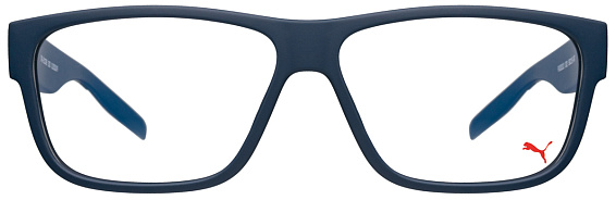 Прямоугольные очки, из материала пластик и цвете синий помогут понять основные черты новой коллекции оправ модного бренда PUMA.