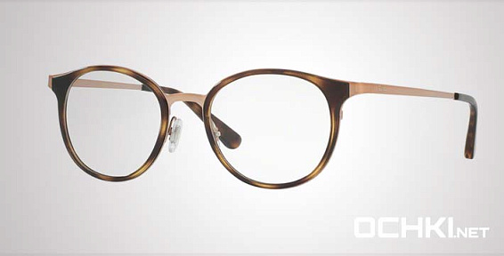 Овальные очки, из материала пластик и цвете коричневый помогут понять основные черты новой коллекции оправ модного бренда RAY-BAN.