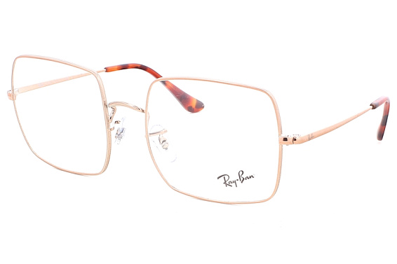 Прямоугольные очки, из материала пластик и цвете золото помогут понять основные черты новой коллекции оправ модного бренда RAY-BAN.