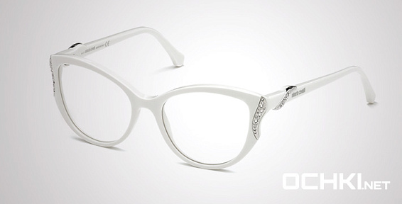 Кошачий глаз очки, из материала традиционные металлы и цвете белый помогут понять основные черты новой коллекции оправ модного бренда ROBERTO CAVALLI.