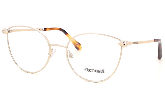 Кошачий глаз очки, из материала традиционные металлы и цвете золото помогут понять основные черты новой коллекции оправ модного бренда ROBERTO CAVALLI.