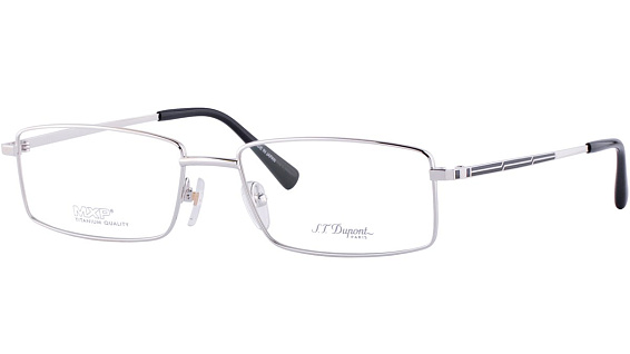 Прямоугольные очки, из материала титан и цвете серебро помогут понять основные черты новой коллекции оправ модного бренда S.T. DUPONT.