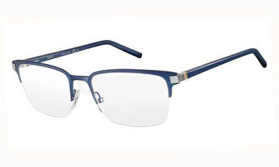 Прямоугольные очки, из материала пластик и цвете синий помогут понять основные черты новой коллекции оправ модного бренда SAFILO DESIGN.