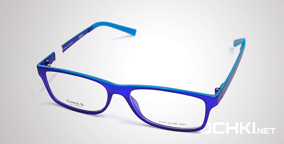 Прямоугольные очки, из материала пластик и цвете синий помогут понять основные черты новой коллекции оправ модного бренда SAFILO DESIGN.