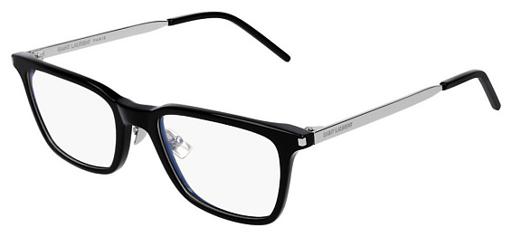 Прямоугольные очки, из материала пластик и цвете черный помогут понять основные черты новой коллекции оправ модного бренда SAINT LAURENT.