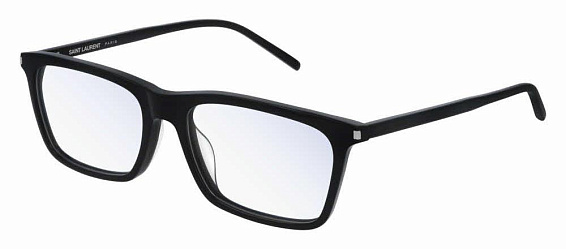 Прямоугольные очки, из материала пластик и цвете черный помогут понять основные черты новой коллекции оправ модного бренда SAINT LAURENT.
