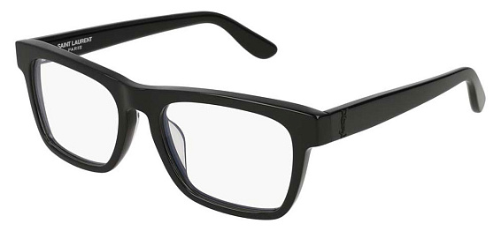 Прямоугольные очки, из материала пластик и цвете черный помогут понять основные черты новой коллекции оправ модного бренда SAINT LAURENT.