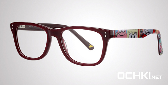 Прямоугольные очки, из материала пластик и цвете бордовый помогут понять основные черты новой коллекции оправ модного бренда SPONGE BOB.