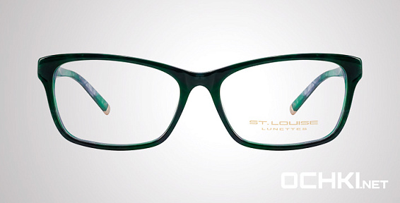 Прямоугольные очки, из материала пластик и цвете зеленый помогут понять основные черты новой коллекции оправ модного бренда ST. LOUISE.
