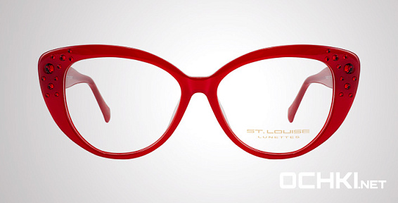 Кошачий глаз очки, из материала пластик и цвете красный помогут понять основные черты новой коллекции оправ модного бренда ST. LOUISE.