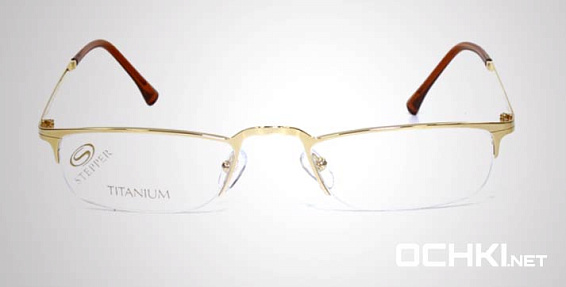 Прямоугольные очки, из материала титан и цвете золото помогут понять основные черты новой коллекции оправ модного бренда STEPPER.