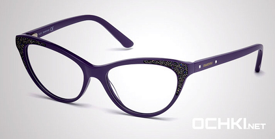 Кошачий глаз очки, из материала пластик и цвете фиолетовый помогут понять основные черты новой коллекции оправ модного бренда SWAROVSKI.
