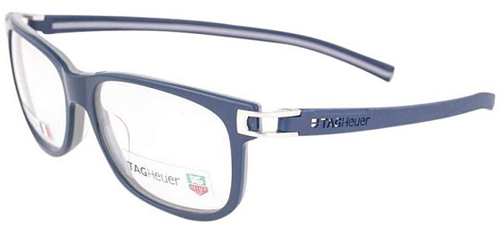 Прямоугольные очки, из материала пластик и цвете синий помогут понять основные черты новой коллекции оправ модного бренда TAG HEUER.