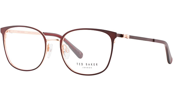 Прямоугольные очки, из материала традиционные металлы и цвете бордовый помогут понять основные черты новой коллекции оправ модного бренда TED BAKER.