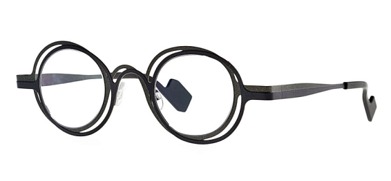 Круглые очки, из материала традиционные металлы и цвете черный помогут понять основные черты новой коллекции оправ модного бренда THEO.
