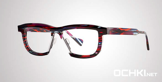 Прямоугольные очки, из материала пластик и цвете красный помогут понять основные черты новой коллекции оправ модного бренда THEO.