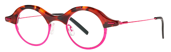 Круглые очки, из материала пластик и цвете красный помогут понять основные черты новой коллекции оправ модного бренда THEO.