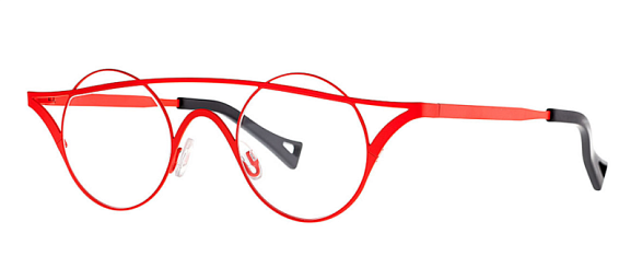 Круглые очки, из материала традиционные металлы и цвете красный помогут понять основные черты новой коллекции оправ модного бренда THEO.