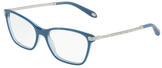 Прямоугольные очки, из материала традиционные металлы и цвете синий помогут понять основные черты новой коллекции оправ модного бренда TIFFANY.