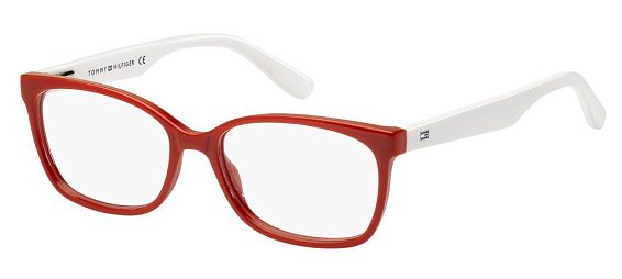 Овальные очки, из материала пластик и цвете красный помогут понять основные черты новой коллекции оправ модного бренда TOMMY HILFIGER.