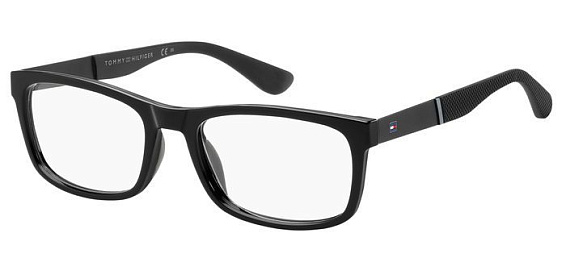 Прямоугольные очки, из материала пластик и цвете черный помогут понять основные черты новой коллекции оправ модного бренда TOMMY HILFIGER.