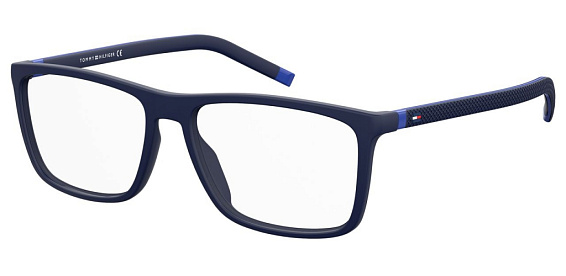 Прямоугольные очки, из материала пластик и цвете синий помогут понять основные черты новой коллекции оправ модного бренда TOMMY HILFIGER.