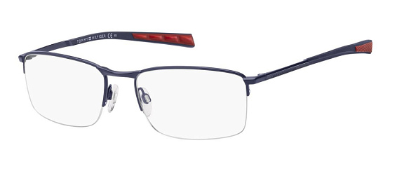 Прямоугольные очки, из материала традиционные металлы и цвете синий помогут понять основные черты новой коллекции оправ модного бренда TOMMY HILFIGER.
