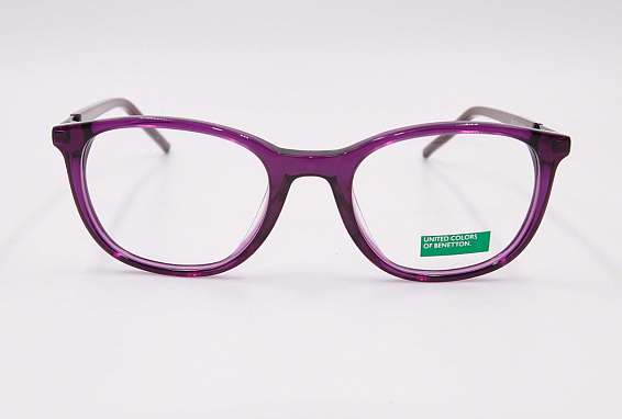 Прямоугольные очки, из материала пластик и цвете фиолетовый помогут понять основные черты новой коллекции оправ модного бренда UNITED COLORS OF BENETTON.