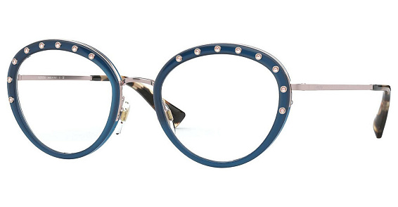 Кошачий глаз очки, из материала пластик и цвете синий помогут понять основные черты новой коллекции оправ модного бренда VALENTINO.