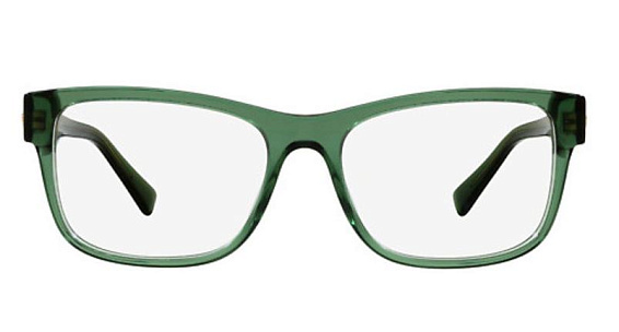 Прямоугольные очки, из материала пластик и цвете зеленый помогут понять основные черты новой коллекции оправ модного бренда VERSACE.