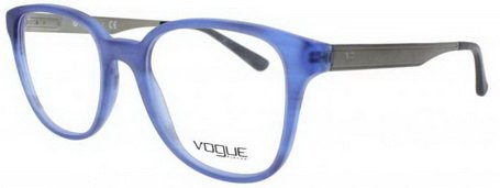 Прямоугольные очки, из материала пластик и цвете синий помогут понять основные черты новой коллекции оправ модного бренда VOGUE.
