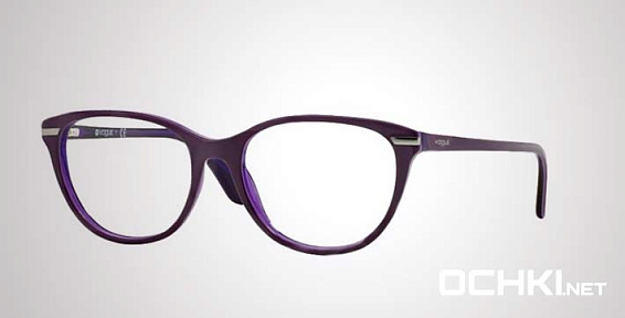 Кошачий глаз очки, из материала пластик и цвете фиолетовый помогут понять основные черты новой коллекции оправ модного бренда VOGUE.
