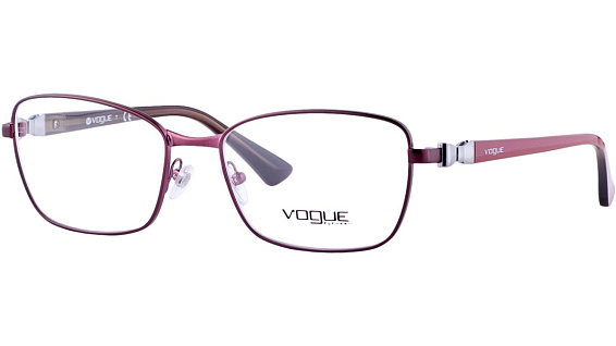 Прямоугольные очки, из материала традиционные металлы и цвете фиолетовый помогут понять основные черты новой коллекции оправ модного бренда VOGUE.