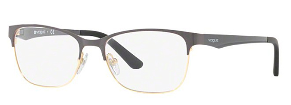 Прямоугольные очки, из материала традиционные металлы и цвете металлик помогут понять основные черты новой коллекции оправ модного бренда VOGUE.