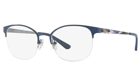 Прямоугольные очки, из материала традиционные металлы и цвете синий помогут понять основные черты новой коллекции оправ модного бренда VOGUE.