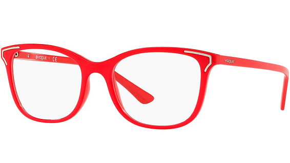 Прямоугольные очки, из материала пластик и цвете красный помогут понять основные черты новой коллекции оправ модного бренда VOGUE.