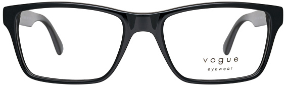 Прямоугольные очки, из материала пластик и цвете черный помогут понять основные черты новой коллекции оправ модного бренда VOGUE.